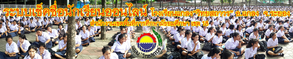 สงวนลิขสิทธิ์ ปีพุทธศักราช 2556. โรงเรียนแกลง"วิทยสถาวร" เลขที่ 164 เทศบาลตำบลเมืองแกลง ถ.พลงช้างเผือก ตำบลทางเกวียน อำเภอแกลง จังหวัดระยอง 21110 ออกแบบและพัฒนาระบบ โดยครูบุญส่ง พุ่มบาน ติดต่อ kruboonsong@hotmail.com